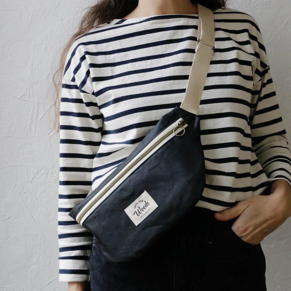 Cette petite banane contient: un compagnon format chéquier, un portable, un trousseau de clés, une moyenne pochette. Fermeture zip. La anse se règle grâce à sa boucle en laiton. Idéale pour vos sorties en ville ou en vélo. Peut être porter façon banane ou façon besace.